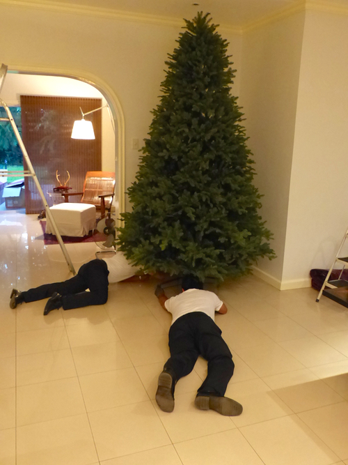 …moving the 9.5 foot tree to it’s corner to check how it looks there…