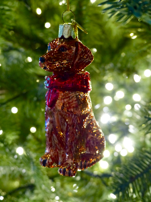 That’s the new ornament for 2016 on our Christmas tree, it’s Ginger, our chocolate labrador who is 99.5 years old (human equivalent years) and patiently awaiting arrival of our daughter who is coming home for the holidays in a few weeks to celebrate Ginger’s 100th year…