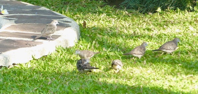 Those birds are called bato bato or zebra doves. We have 4-6 of those living around our house.
