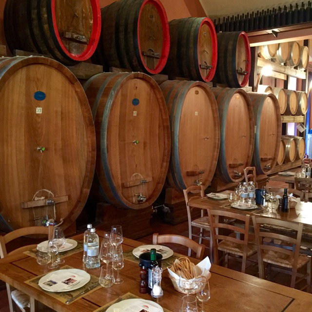 Lunch tables were set out in a room filled with enormous barrels, just beside rooms were wine was made/bottled. The view from the terrace above the building was spectacular, so if you decide to tour this winemaker, make sure to reserve a table for lunch and the view.
