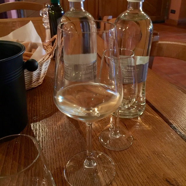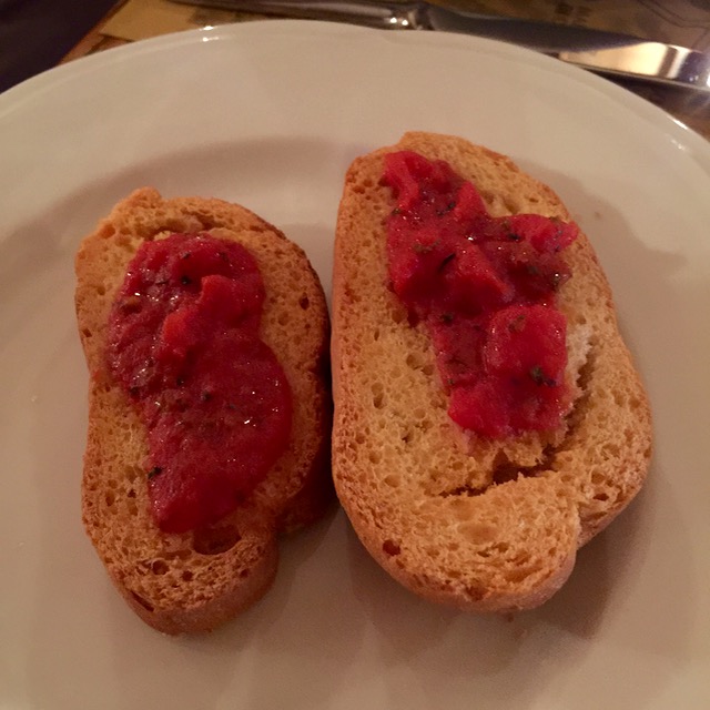 The tasting lunch started with some classic bruschetta topped with tomatoes. In this case, the bread was very crisp, all the way through.