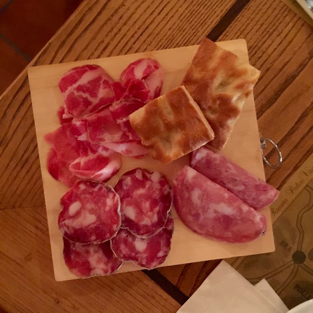 A platter of salumi followed next, and the salty, fatty cured meat was a welcome break from the several glasses of wine we had had so far… We finished this entire plank of salumi with freshly baked foccacia!