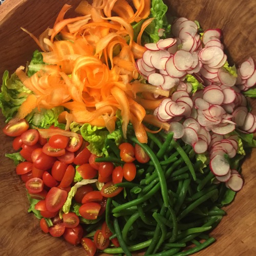 We had a nice two-kilo baked lapu-lapu as well but my photos of it were wickedly bad, almost as if the fish didn’t want to be photographed alongside the beef and foie. And a big salad for anyone who wanted to balance out the protein. Guests brought more than enough wine for the evening. Various types and vintages, in a sort of clear out your (but still fabulous) cellar since MM said this is a shorts kind of dinner…