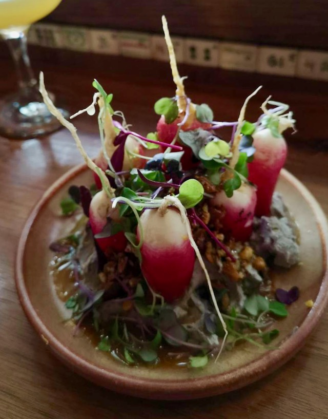 Labanos at pinaitum. We didn’t order this dish, but I think the Chef thought we should try it. Thank God for that. French radishes sitting on a bed of coconut meat, burnt coconut meat and coconut cream with honey. I think it was all emulsified and chilled to set. Several garnishes such as micro greens, toasted coconut, etc. on top. The dip almost had a consistency of hummus. It was amazing. Surprisingly delicious, but really delicious, and not really reminiscent of anything Filipino, but somehow it still had Pinoy soul. For a westerner, they would just think it was an amazing dish, regardless of provenance or nationality. Note to self, it was disarmingly rich and only became obvious because of how much we would eat in total that evening.