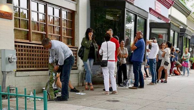 You can tell who the regulars are, they come armed with portable seats, novels, tablets. We had shopping bags instead, to sit on the pavement while we wondered what was on the menu for dinner… The wait wasn’t so bad. But a quick tip for MM readers… just send one person to line up and have your friends come 10 minutes before opening… that’s what lots of other folks did. If you aren’t ion the first 8-10 people in line, you may have to wait even longer for a seat after opening. With just two dozen seats or so, and maybe just 2-3 tables for 4, Bad Saint can’t accommodate too many people at one seating. Maximum group size is 4 people.