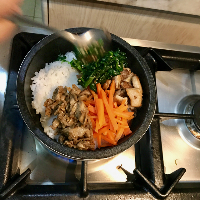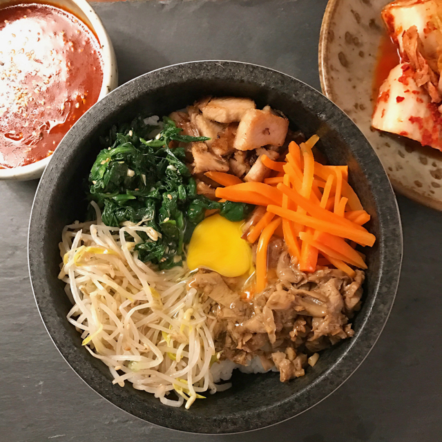 This was the first mix… until I realized I needed a lot more gochujang sauce added in. For a first try, it was a huge hit! A little on the spicy side (I was sweating by the time I was halfway through the bowl), I doubled that up with copious amounts of kimchi and more of the side dishes as well. It was SO SO EASY to do, and will definitely be experimenting more with these stone bowls, perhaps even attempting Filipino “stone bowl” meals!
