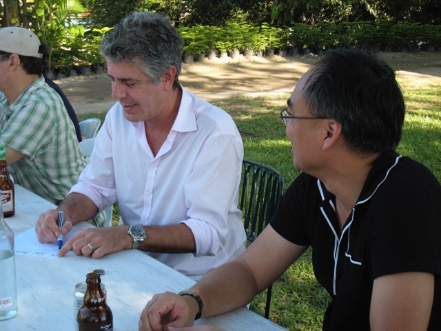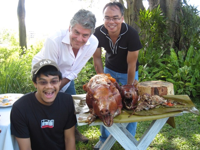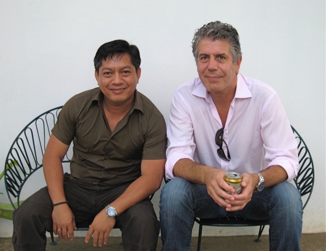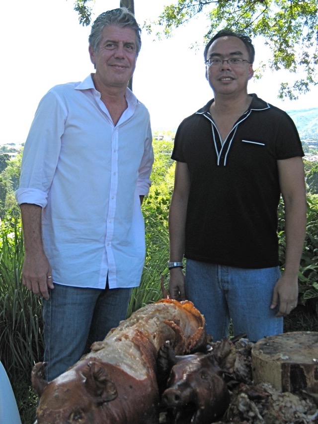 At some point during the day, in the air-conditioned board room between takes, he looked at me, and said something to the effect, “So tell me, how did you end up roasting pigs, because to be honest, you don’t seem like the typical lechonero, if there is one…” and I replied, “Actually, I spent a lot of time in the U.S. for university and grad school and even had a chance to eat at Les Halles several times while you were cooking on the line…” to which he raised his eyebrows and wanted to know more asking “where did you go to grad school and what did you take up?” and I replied “I got my MBA at Columbia, worked for over a dozen years in strategy consulting before retiring and moving home…” and he smiled brilliantly and said… “wow, a lechonero with an Ivy-league MBA, that’s a first for us, definitely…” and we laughed so, so deeply. He was a good man, and will be sorely missed.