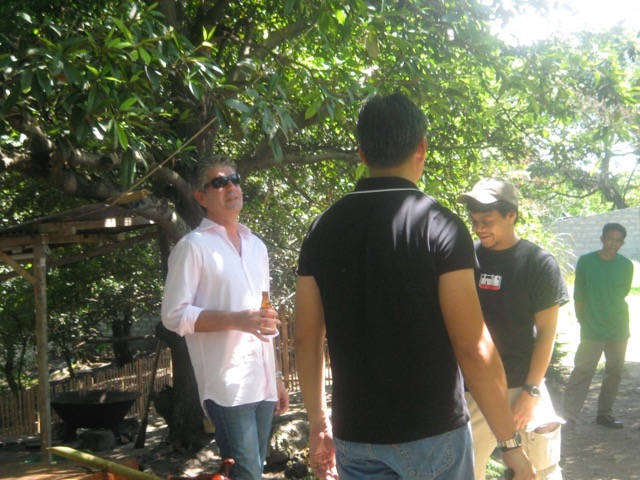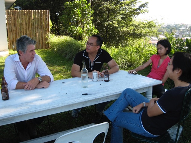 Shooting the breeze with San Miguel in hand with Augusto (the host from the Bourdain search contest) and myself.