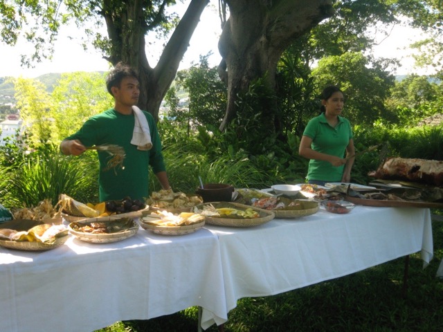 The buffet under a humongous kapok tree.
