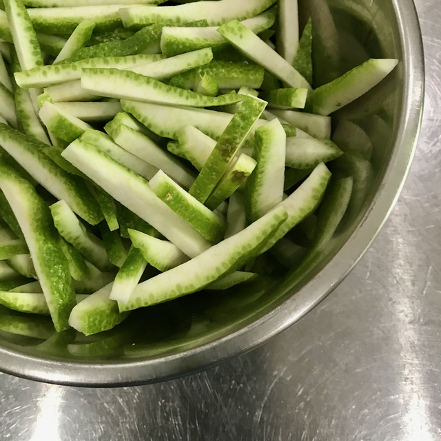 Cut into 2-3 inch sticks with a bit of the white pith included.