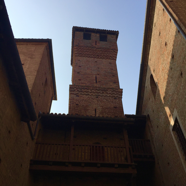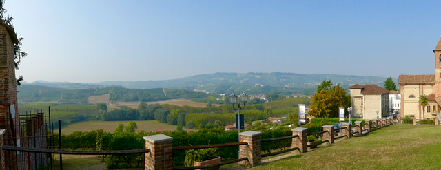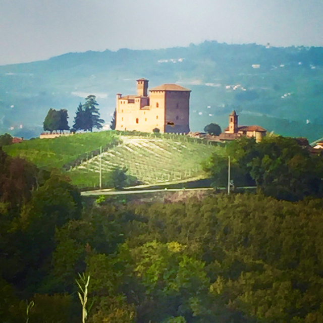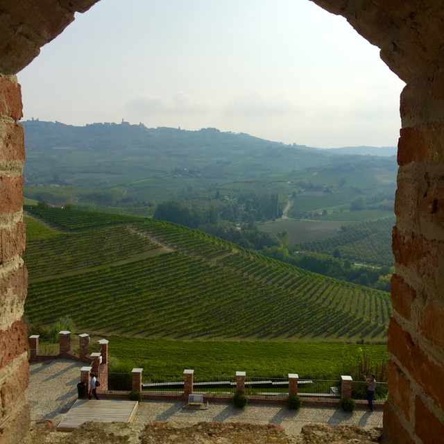 The castle sits on a hill with spectacular 360 degree views towards the surrounding Piedmont region. Verdant hills, vineyards, patches of forest are all visible from every side of the castle.