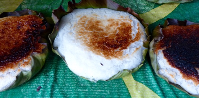 So when we passed this isolated little bibingka stall in the hills above Catmon, where just a few motorcycle drivers and passengers pass by, and maybe a vehicle or two every half hour, we decided to stop and see what the bibingka tasted like. It was SUPERB! Made only with rice, water, sugar and coconut meat/milk, this simple, simple cake was sublime. It definitely tasted better than the sum of its parts, and perhaps because it was so isolated, so freshly cooked and so earnestly offered up, I think it beat the many vendors on the main road in Catmon by a mile.