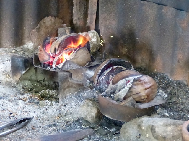 The dried coconut husk is used as fuel, instead of charcoal that would cost more and apparently not burn as hot.