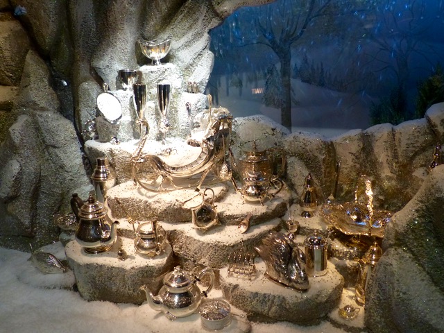 A window filled with silver doodads. Tradition still holds strong in these parts.
