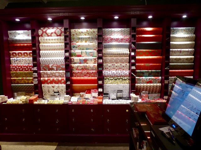 A wall of the most stunning Christmas wrappers and cards.