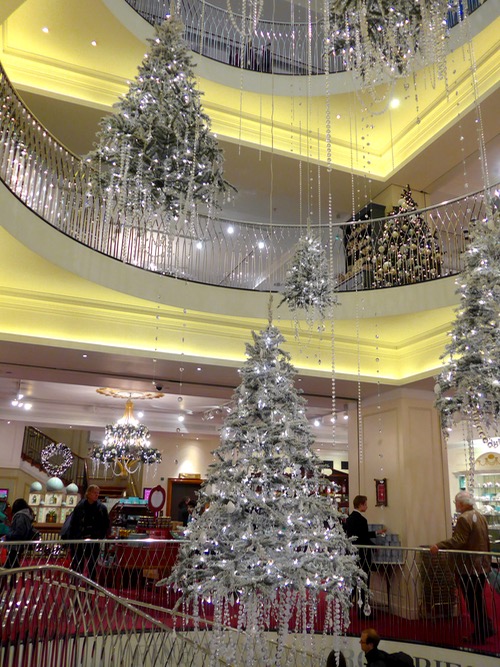 The atrium in the wonderful store. With hanging Christmas trees!