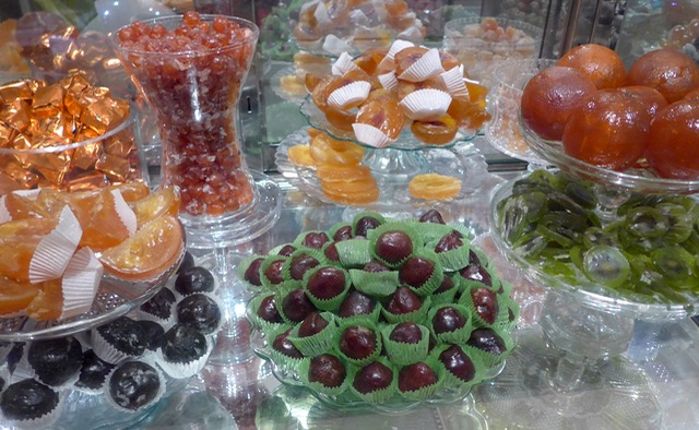 The candied fruit counters stopped me in my tracks. Again, just pure wonder on my part. They were beautiful to behold.