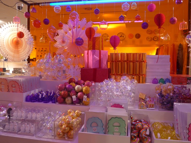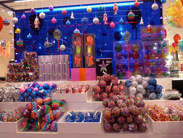 Inside were all manner of doodads and kitsch for the holidays. To be honest, I was a bit disappointed how kitschy it had all become. I somehow remember a finer selection of items at Conran’s several years ago. But it was colorful, festive and seasonal in a young, modern kind of way.