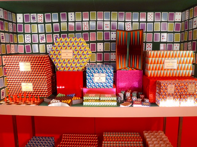 Beautifully designed graphics/coverings for card cases, game table items, etc. After just 15-20 minutes in the shop, we left empty-handed. But that Michelin building next door… Wow. :)