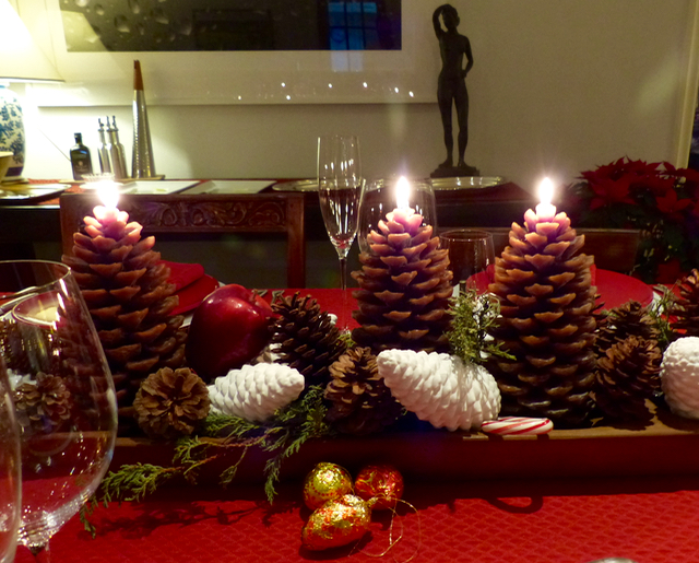 Just before sitting down to dinner, the pine cone candles were lit…