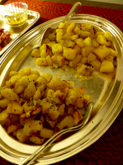…two kinds of roasted potatoes, one with goose fat, and another with butter for vegetarian (not vegan) guests that evening. The one with goose fat was much better, in my opinion. :)