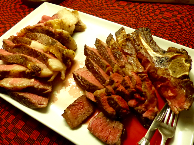 Two kinds of steak, very thick cowboy and tomahawks for the beef lovers…