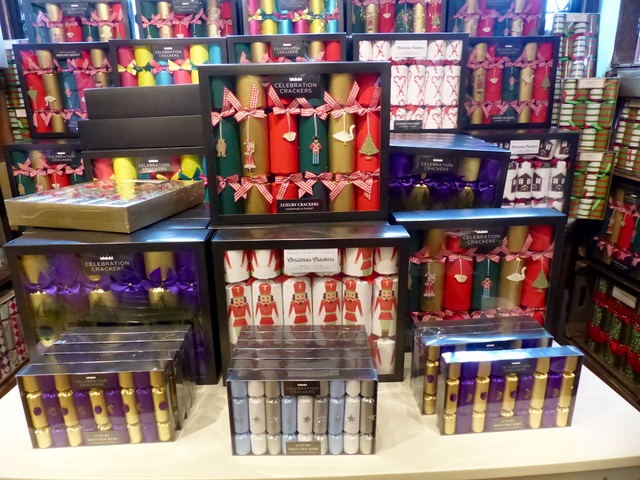 In another section, a good selection of Christmas crackers — those wrapped tubes that contain party favors.