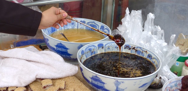 Our final stop on “The Lost Plate” food tour in Xi’an was literally a sweet, fragrant ending to a lovely morning spent eating and touring markets. Rice cakes with fresh honey and a rose petal syrup. PHENOMENAL.