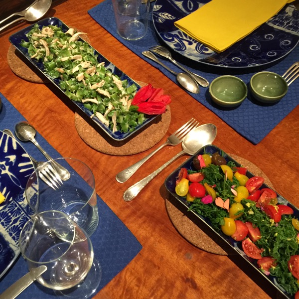 We added two other salads — first a pako or fern salad with cherry and pear tomatoes and a soy vinegar dressing, and a sigadilyas and grilled chicken salad with a coconut milk, lime and fish sauce dressing. It looks like a lot. We had to refill the platters and there were only four of us. :)