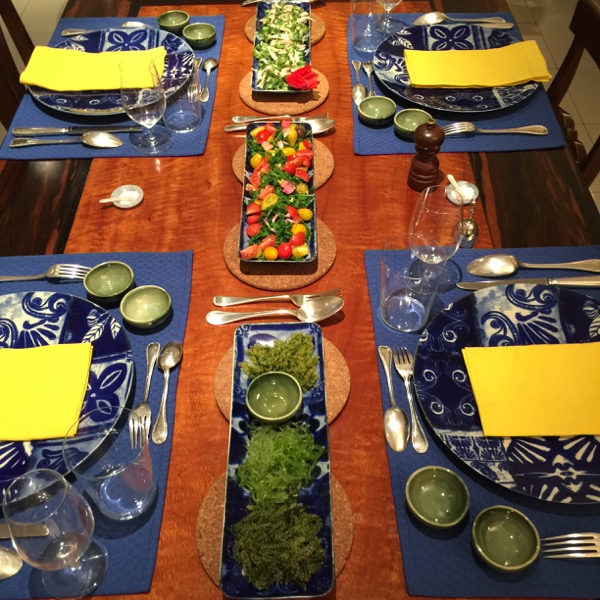 Blue and white vs celedon. So pretty, even more with those fresh, colorful salad. A visual treat, obrigada!