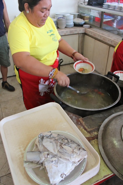 The server must have thought we were special (or suckers for ordering so many other things) and she gave us a bowl of broth with the bihud or fish egg sack of the fish… this is local delicacy and highly sought after by some diners.
