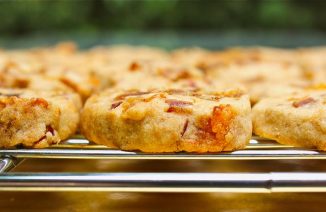 It doesn’t seem like the holidays unless there is at least one good fruitcake in the house (and I am referring to the baked good). I have never baked a fruitcake, it’s Sister’s specialty, but I have grown to enjoy a thin slice of the rich treat every once in a while, with a cup of hot tea. And not necessarily at Christmas, in fact, they tend to be at their peak of flavor several months later… So while practicing my couch potato stance watching Ina Garten on the food channel a few weeks ago, I was intrigued by her extremely simple sounding fruitcake cookies…