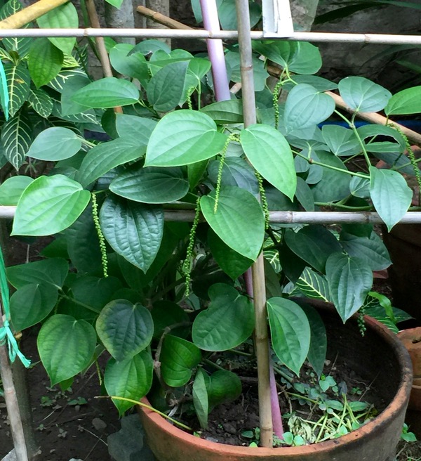 So I will go with a bird pooping a ripe peppercorn, a discarded batch of good peppercorns from the province that were never treated to anything, or just sheer bloody luck for this robust plant that happens to be in a large pot and is now growing like crazy with the recent rains in Manila.