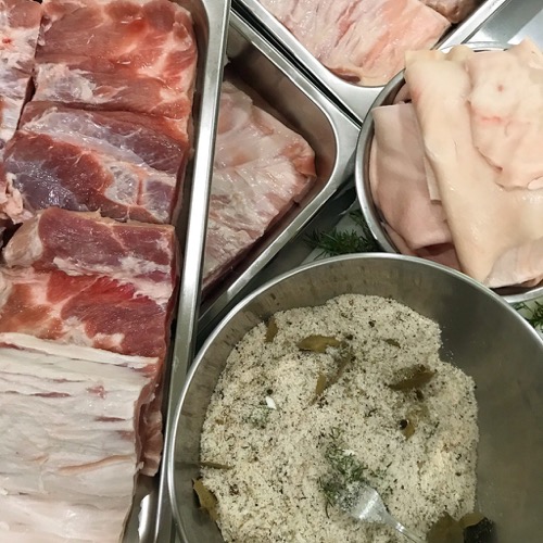 Flip the slabs of pork DAILY until you ascertain that they have cured long enough. If you let them go too long, they become very, very salty. If you don’t let them cure enough, they may lack salt and worse, may start to rot during the drying process. You may notice that you lose some liquid in this stage and that is good. Some slabs of pork lose more liquid that others.