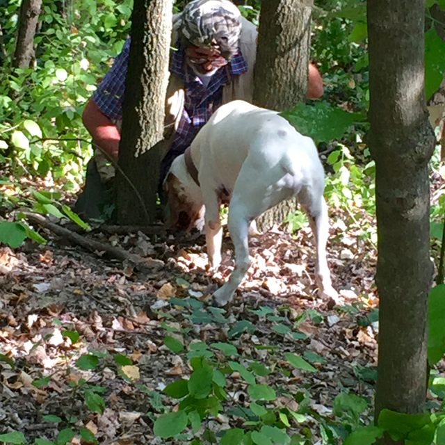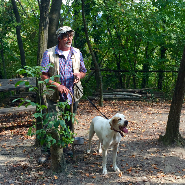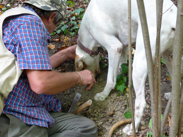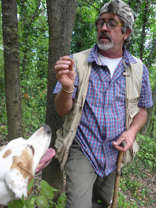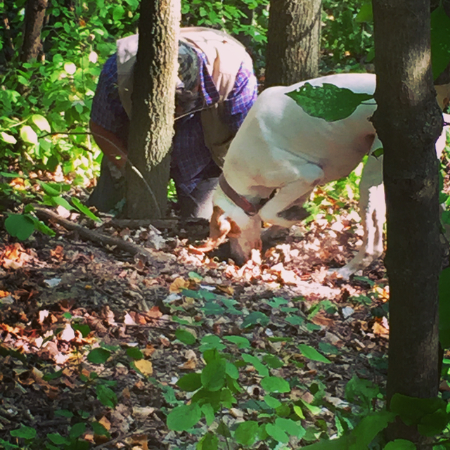 We entered the woods owned by the family of Natale across the road, these were once planted with grapes, and several decades ago allowed to return to wild forest and underbrush. It’s a continuing battle between wine and truffles in Alba, with the latter requiring natural forested areas to thrive. It is said that when it is a good year for wine (generally a hot late summer, minimal rain, etc. so you end up with very intense robust wines) it is a horrible one for truffles. Truffles prefer wet, damp and cold conditions and this year it was not that at all…