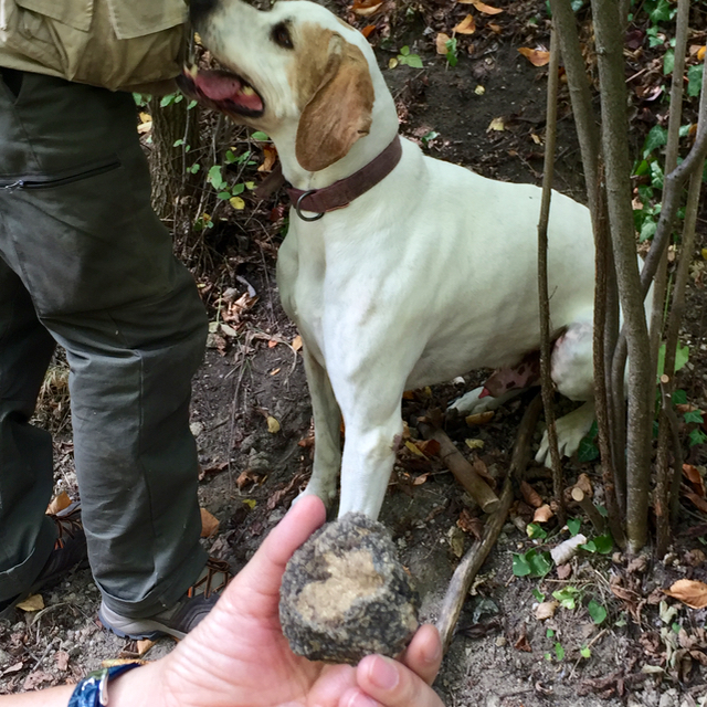 And then about 45 minutes into the hunt, Brio found this beautiful white truffle — it had a nice shape, heft, density and amazing amazing fragrance. We were so excited and in that one hour our trip seemed to have been made so special, so complete. We would go on to find a few more white truffles of a diminutive size, and our guide Giorgio kept shaking his head about the weather and poor conditions for truffles this year.