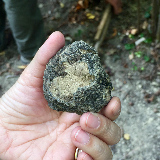 …to yield this pretty hefty black truffle. I had no idea they grew together, black and white (though that was obviously a duhhh moment), and frankly, Giorgio was a little cross/disappointed with Brio as apparently he is trained to ignore the black and just look for the white truffles. The locals poo-poo the black variety and I had visions of his tossing the black one into the woods and my scrambling to go find it myself.