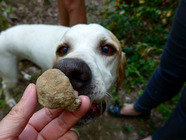 But about 80 meters down the path, I snapped this, can you see it? What I would give to have the olfactory capacities of a hound. Overall, the truffle hunt was a fantastic experience, and now every time I savor shavings of white truffles, I will know exactly how they are discovered in the woods.
