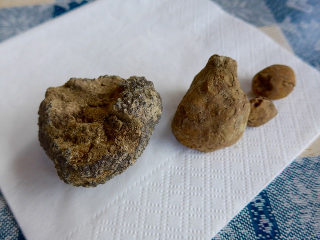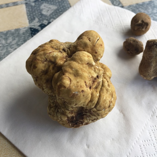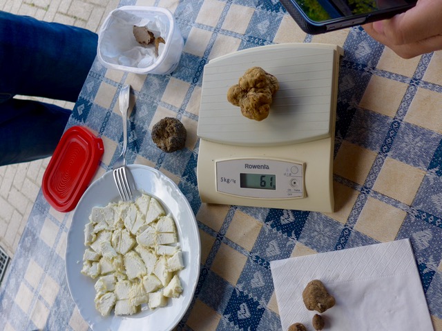 Our guide had found this rather substantial white truffle earlier in the day, but note that the dogs had scratched the surface of the truffle, so it was “damaged” goods so to speak. At roughly 60 grams in weight, it would be worth approximately Euro180 or $200 but could serve some 7-10 people.