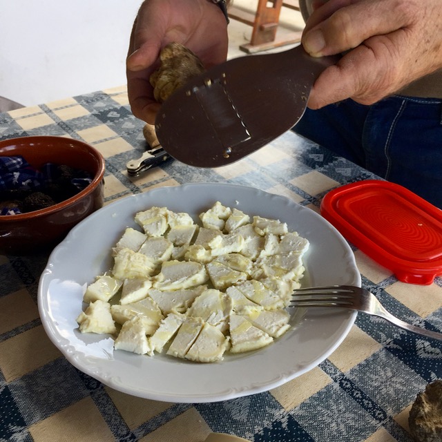 …and shave a VERY GENEROUS amount of white truffles on the cheese!!! We were quite taken aback by this snack for peckish guests while sitting outdoors enjoying the view of the Alban countryside.