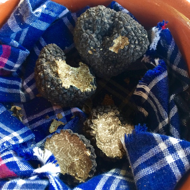 Natale also took out a sampling of recently found black truffles that had been brushed clean of dirt, cross sections that showed the density and patterns within. These were fragrant, but again, a different level of aroma and intensity than the white truffles.