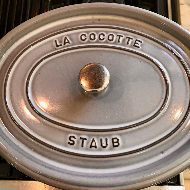 Add the browned goat cubes, making sure that the liquid comes just about to the top of the meat. Add a little broth if necessary. Oops, I forgot season the veggies while sautéing, season the stew again now. Don’t overdo the salt, you can always add some later, but it’s hard to tone it down…