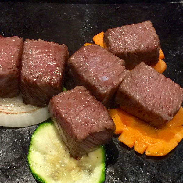 Next were three hot stones each with 100 grams of wagyu of another grade from the steamed dish, and these were seared and cooked to the level you desired, though rare is really the only way to go. These were delicious, but I must say the maximum fatty point was being reached rather quickly, at say just 120 grams per person of meat that evening.
