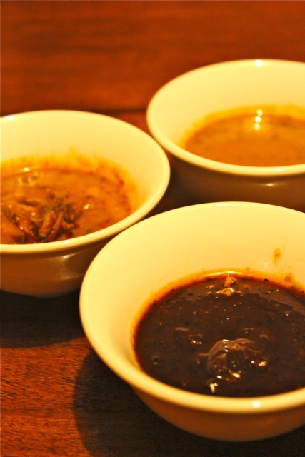 …served with three dips, one of roasted peppers, another of peanuts and a third was curry based, if I recall correctly. I don’t take notes at these types of dinners, so Mark and Carmel please correct me if I am not accurate on the dishes…