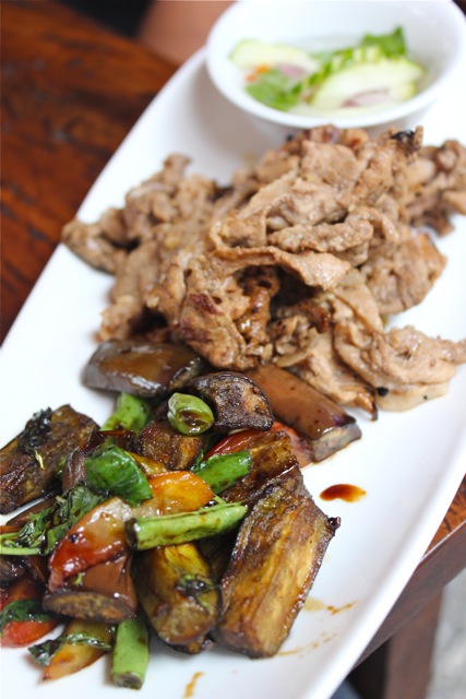 I think Carmel smokes her own pork, and this flavorful ingredient appears in several dishes. One evening it was added to a salad, that was beautifully dressed, a real pleasure to eat. Sometimes the smoked pork is in a fried rice dish, also delicious.