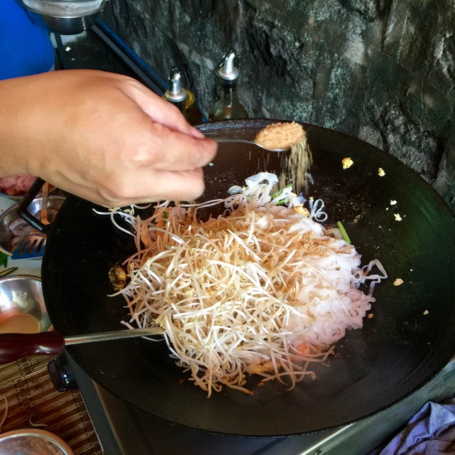 Add lots of bean sprouts, some brown sugar (or palm sugar syrup if you have it), some fish sauce and mix gently.