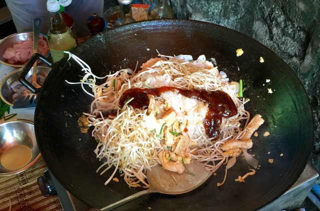I added some homemade tamarind paste (don’t overdo it, the sourness can overpower) and a bit more fish sauce and a bit of sriracha sauce and toss some more until everything is well-blended.