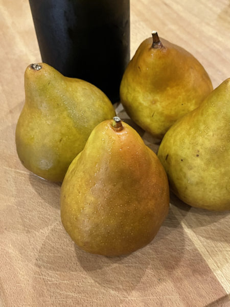 So a few days ago, we needed a few ingredients and popped into Landmark grocery (I love their comprehensive selection of goods, but rarely go myself these days) and it’s only my second visit in nearly two years. Lo and behold, right at the entryway, were a display of neglected and unloved Bosc pears, so I bought a few. Over the years, my recipe for this dessert has evolved, and to be honest, I don’t really follow a recipe, so this is how I did this version, and it worked beautifully.