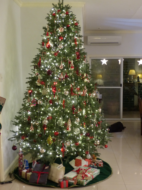 And this is the tree after the party. But then again, Santa makes another stop at our home just before Christmas Eve… thank goodness. Our extended family wishes you and yours a fabulous Christmas!!