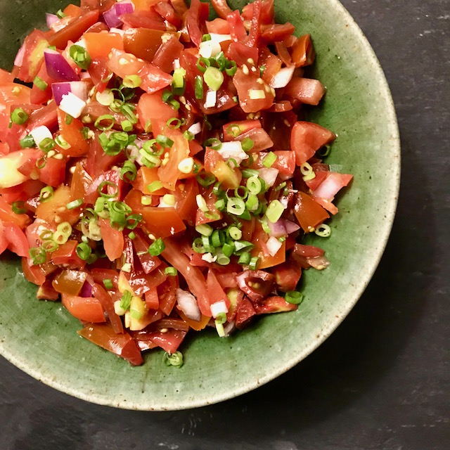 Still of the pinoy theme but presented a different way, I decided to make a simple tomato salsa to serve with the monggo and tinapa spread. Some dayap from our garden in Cebu, seasonings, olive oil and a bit of red wine vinegar. I didn’t use cilantro or wansoy as I knew one of the guests had an aversion to it. But wansoy would have been better than chopped green onions. This salsa was nothing unusual, but its presentation alongside the other spread was giving me serious pinoy meal vibes, but in a chilled appetizer guise. Had we put finely chopped salted red egg, this would have really been cool and reminiscent of hundreds of similar such meals I would have enjoyed growing up.